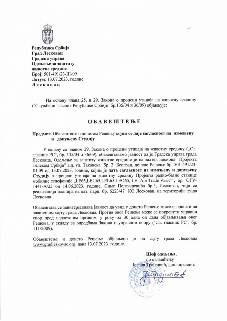 Решење број 501-491/23-III-09 од 13.07.2023.године